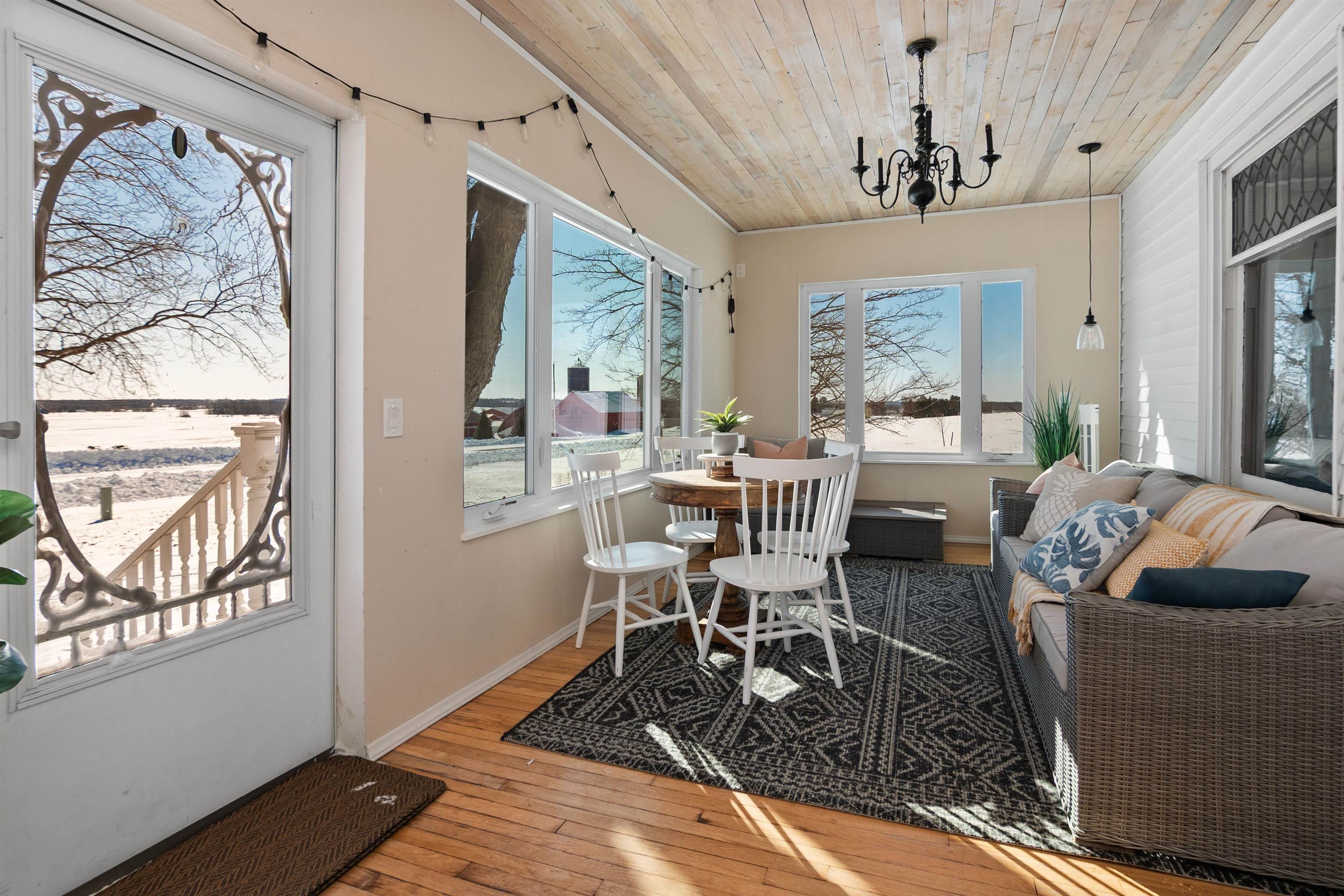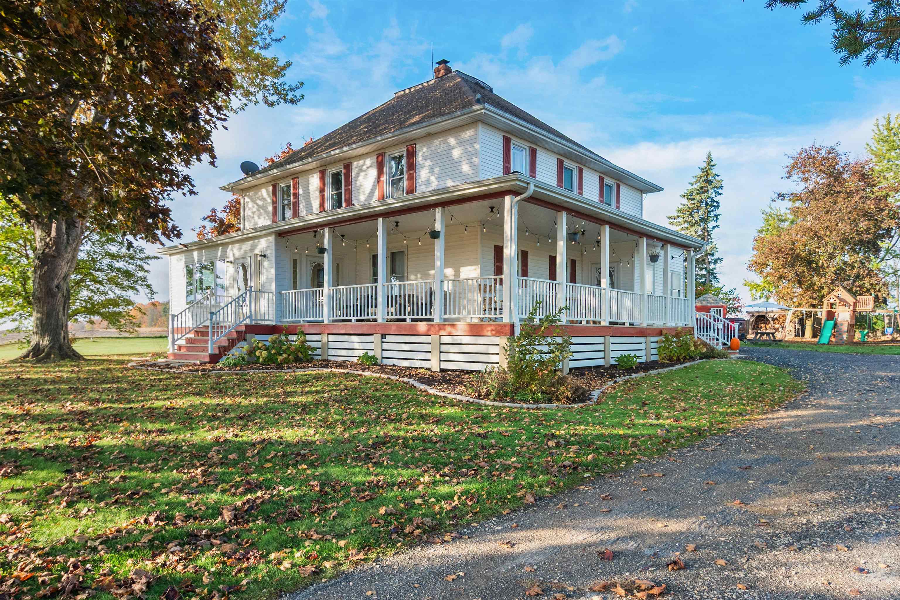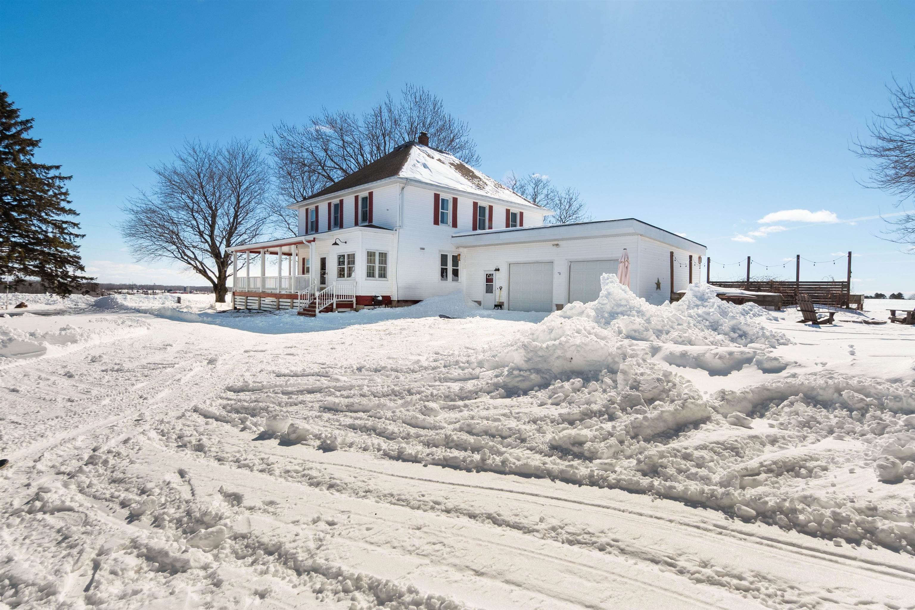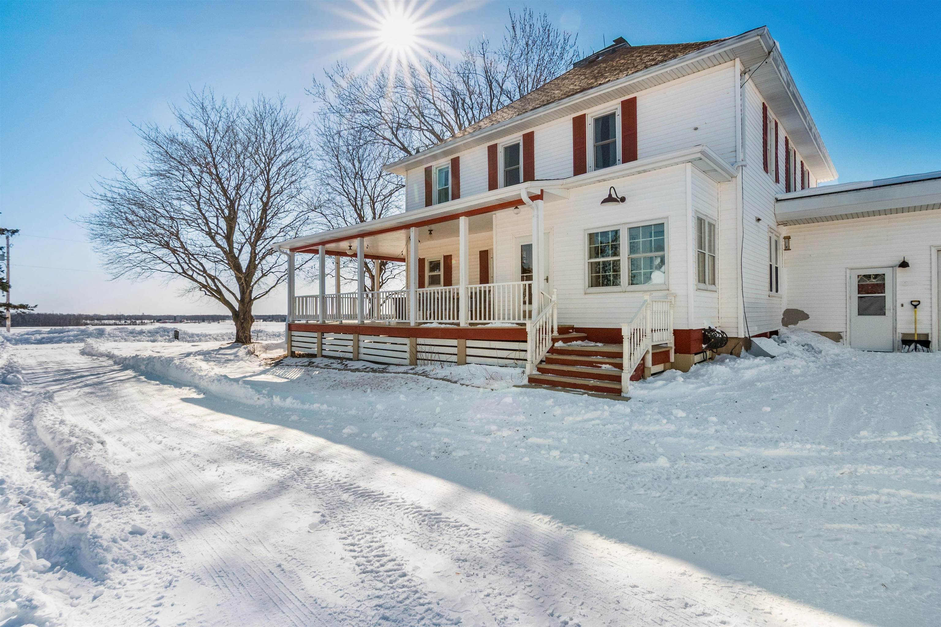 Welcome home to this charming, olde-world farmhouse featuring original wood floors, trim and built-ins! Entertain in the inviting formal dining room & enjoy a bright kitchen with concrete counters & tile backsplash. Main lvl features 9' ceilings, 1st fl. laundry, bedroom/flex space. 2nd lvl includes spacious primary bedrm & full bath w/ tiled shower/soaker tub. Sip your morning coffee in 1 of 2 screened porches before enjoying a stroll around the lovingly landscaped 1.58-acre grounds & bountiful orchard! Enjoy apple, mulberry, peach, cherry, pear trees & raspberries, grapes & asparagus. Adnl features: wraparound porch, mudroom w/ ample storage, 2-stall att. grg, oversized det. 2-stall grg/shop. Per SLR: septic ('21), windows/furnace ('15), AC ('18). Conveniently 25 min from GB or Appleton!