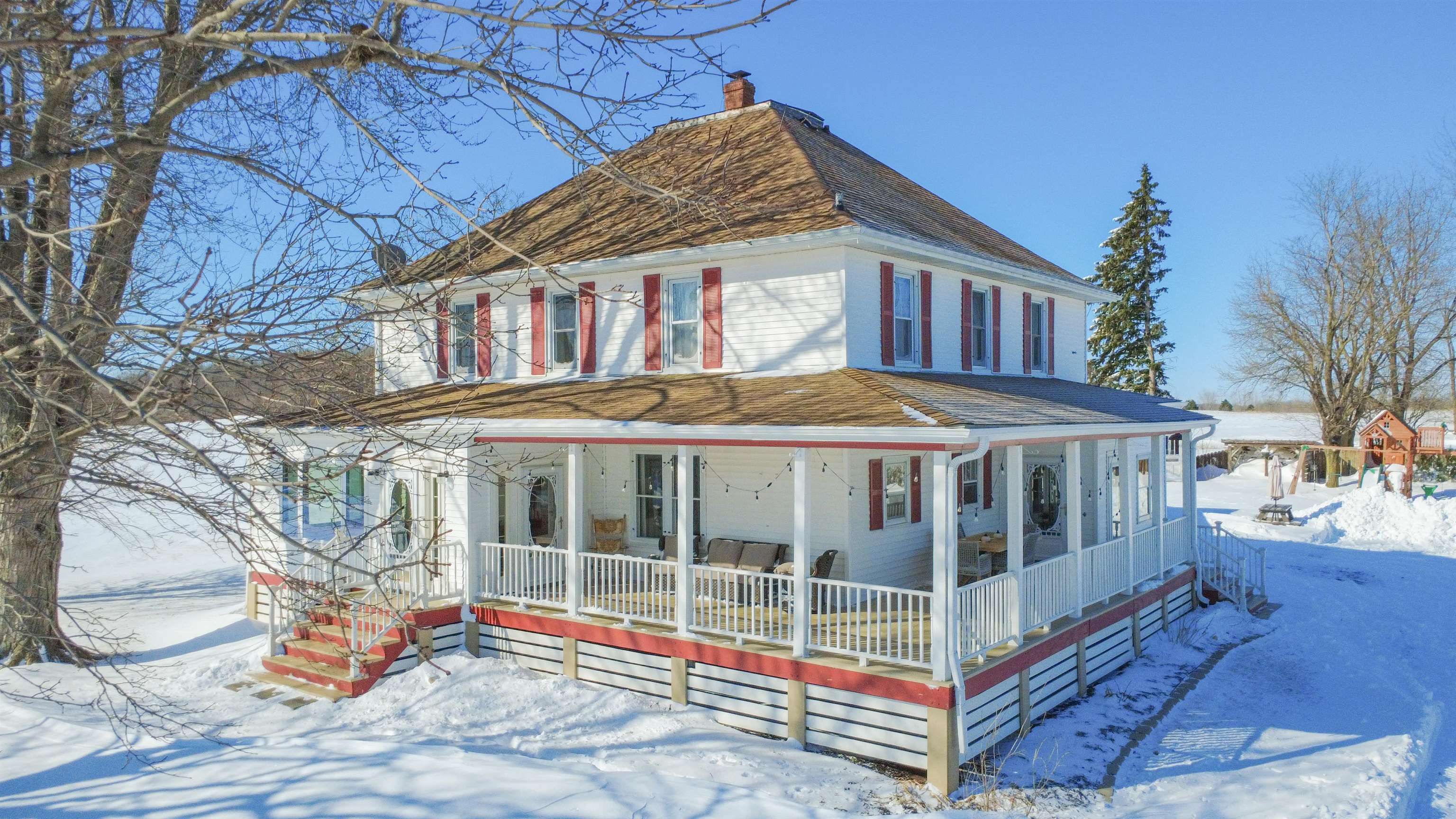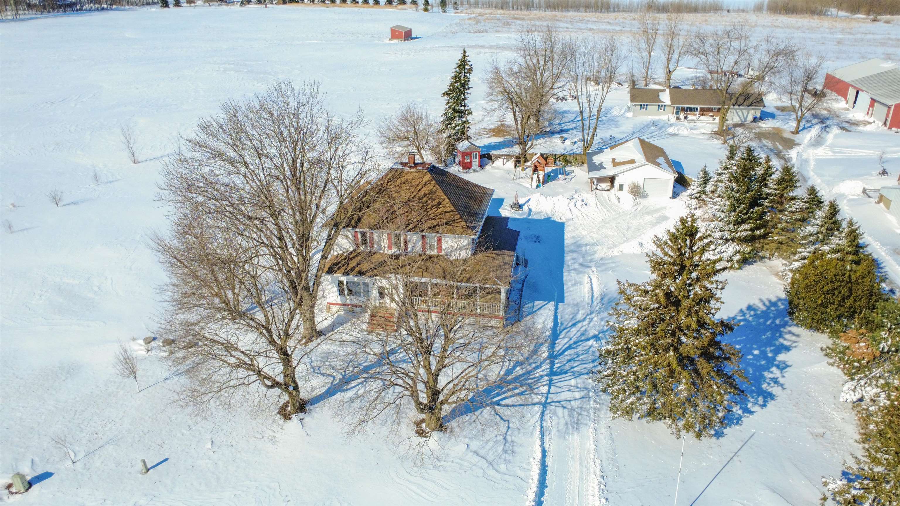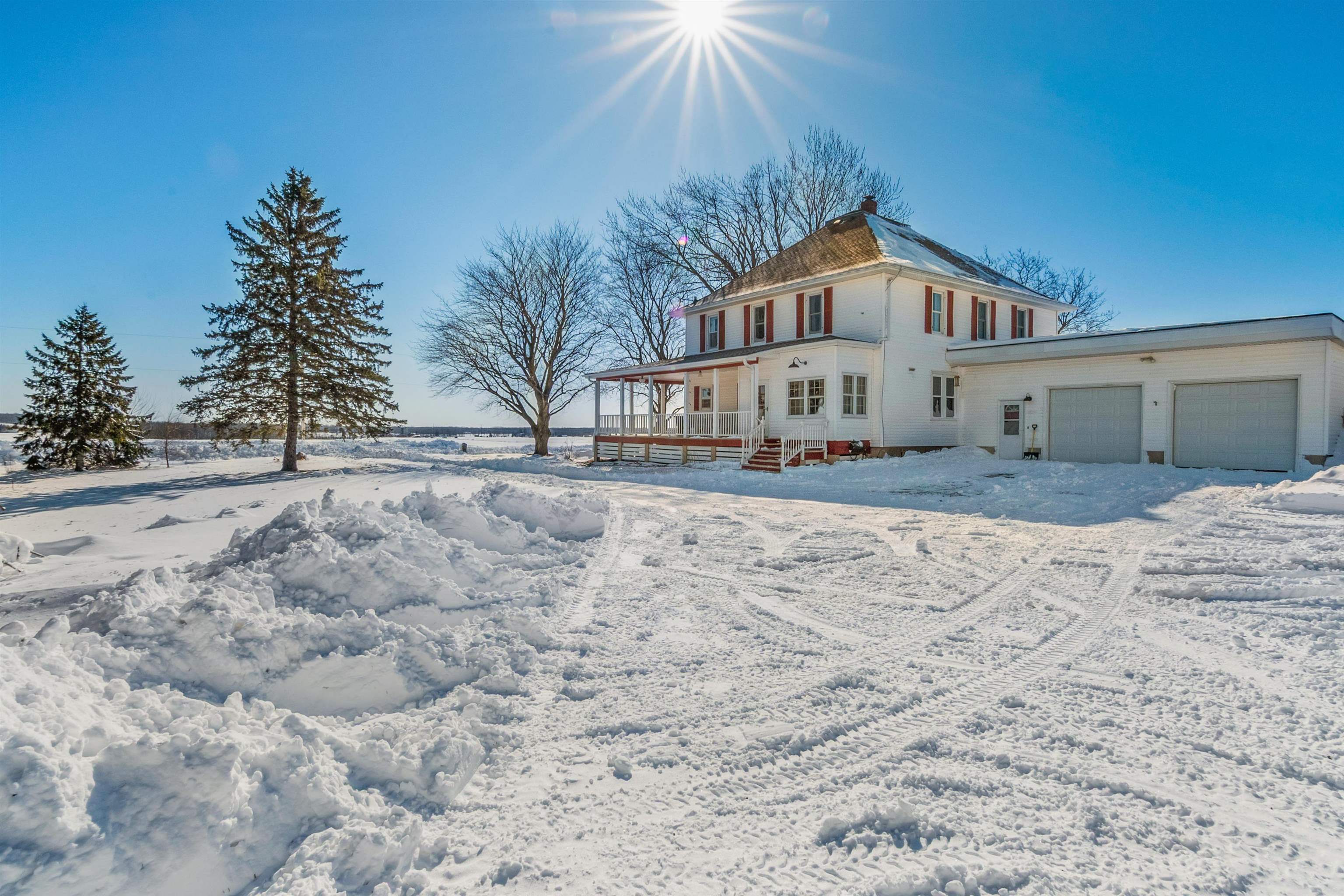 Welcome home to this charming, olde-world farmhouse featuring original wood floors, trim and built-ins! Entertain in the inviting formal dining room & enjoy a bright kitchen with concrete counters & tile backsplash. Main lvl features 9' ceilings, 1st fl. laundry, bedroom/flex space. 2nd lvl includes spacious primary bedrm & full bath w/ tiled shower/soaker tub. Sip your morning coffee in 1 of 2 screened porches before enjoying a stroll around the lovingly landscaped 1.58-acre grounds & bountiful orchard! Enjoy apple, mulberry, peach, cherry, pear trees & raspberries, grapes & asparagus. Adnl features: wraparound porch, mudroom w/ ample storage, 2-stall att. grg, oversized det. 2-stall grg/shop. Per SLR: septic ('21), windows/furnace ('15), AC ('18). Conveniently 25 min from GB or Appleton!