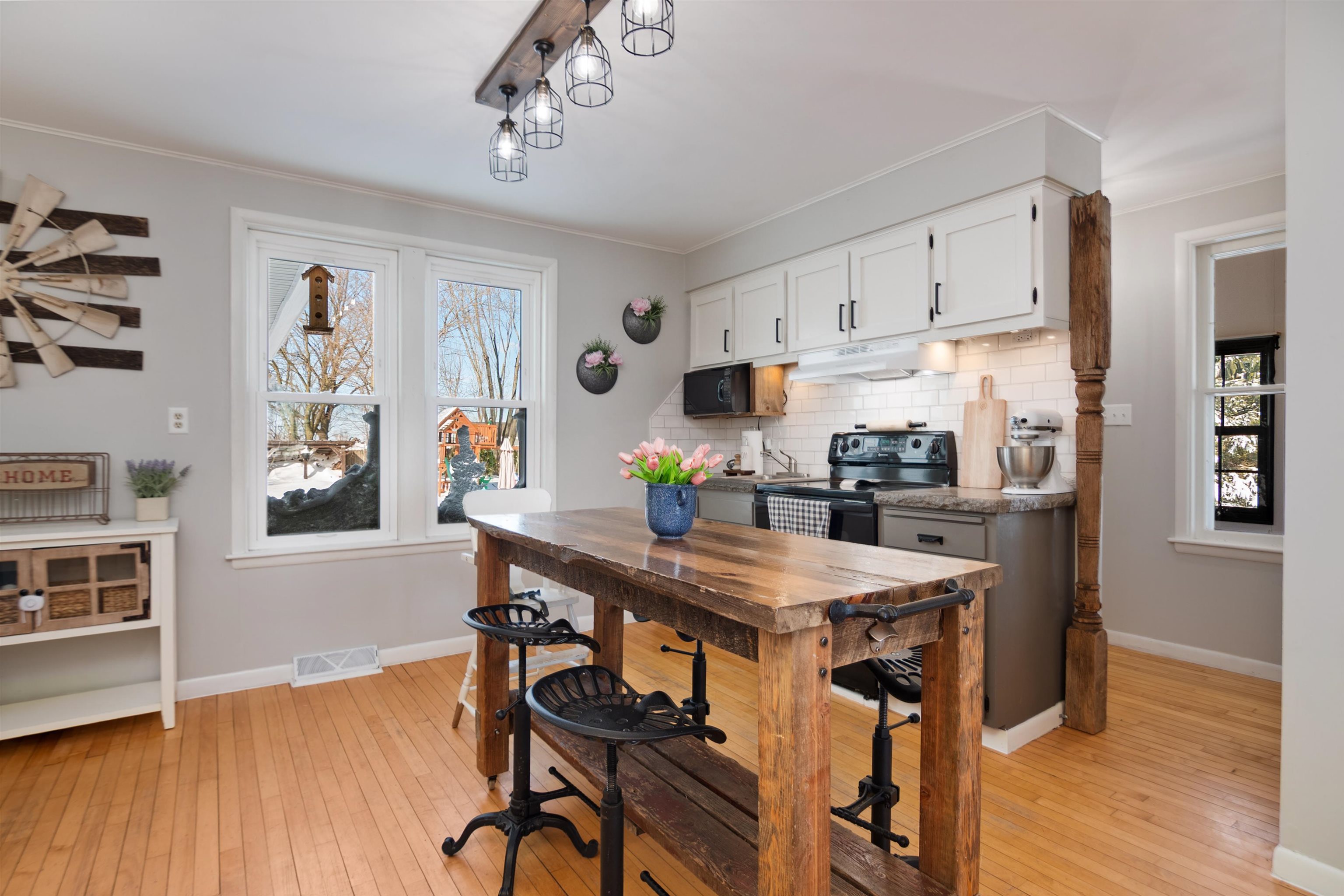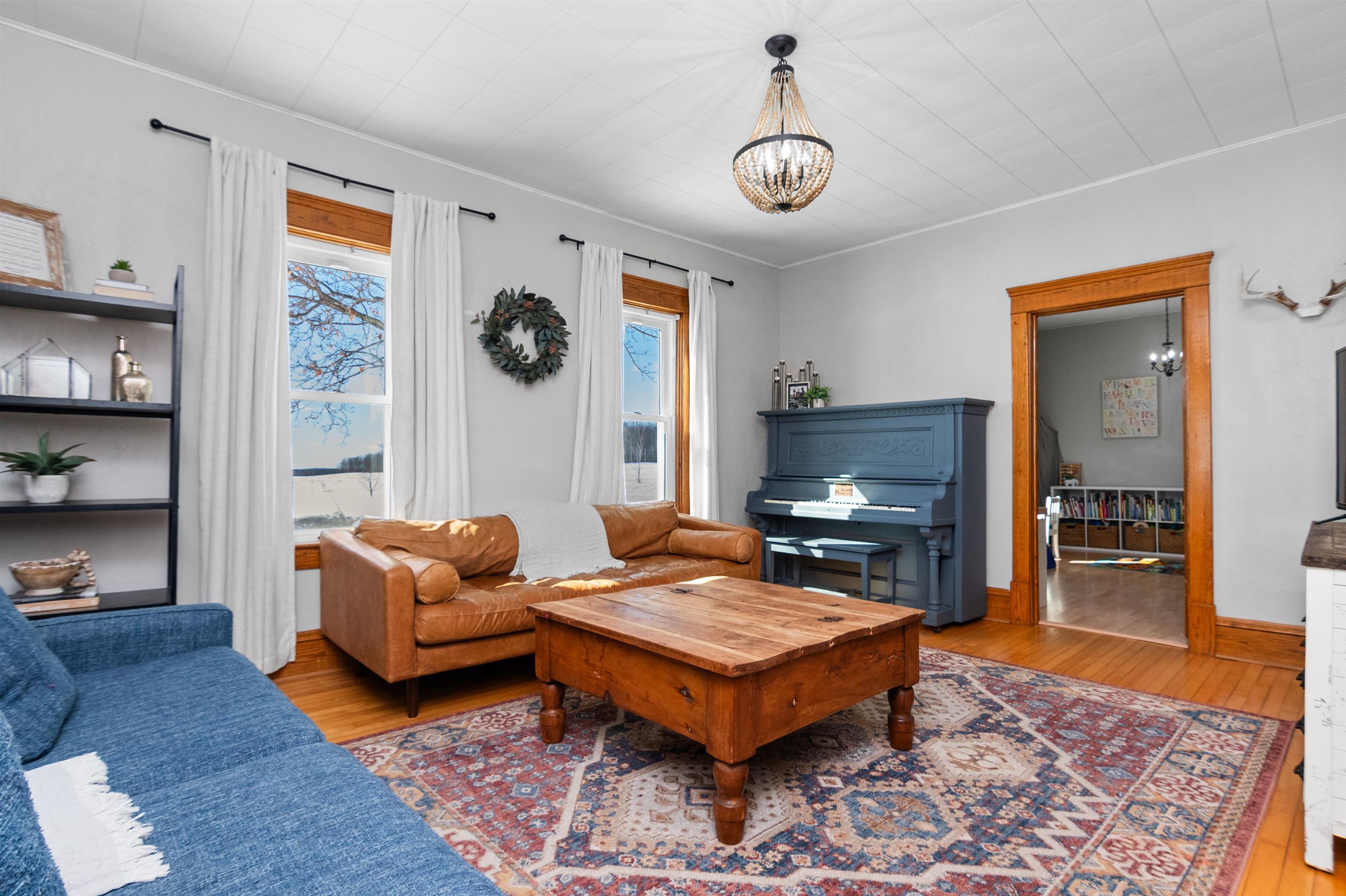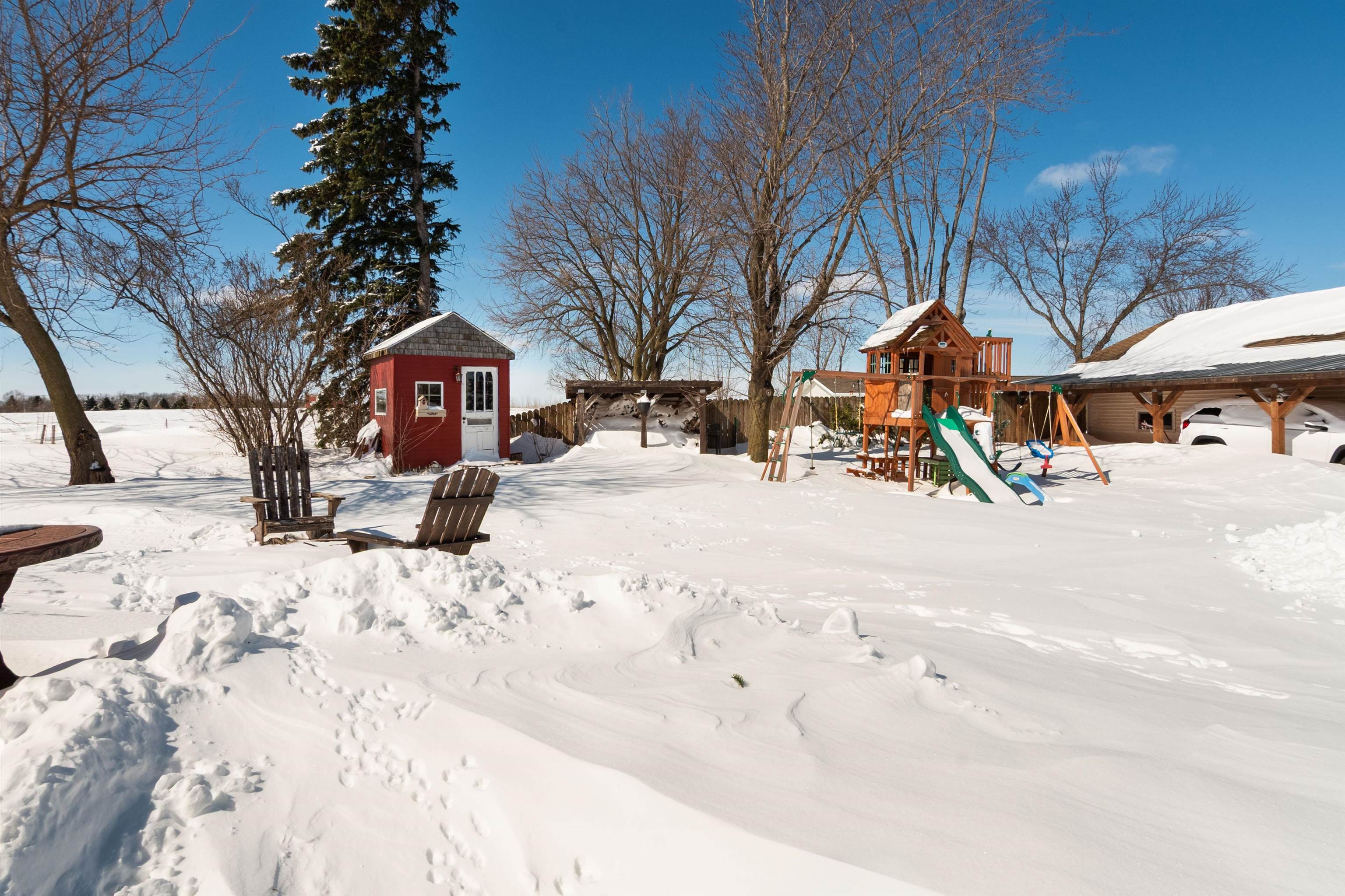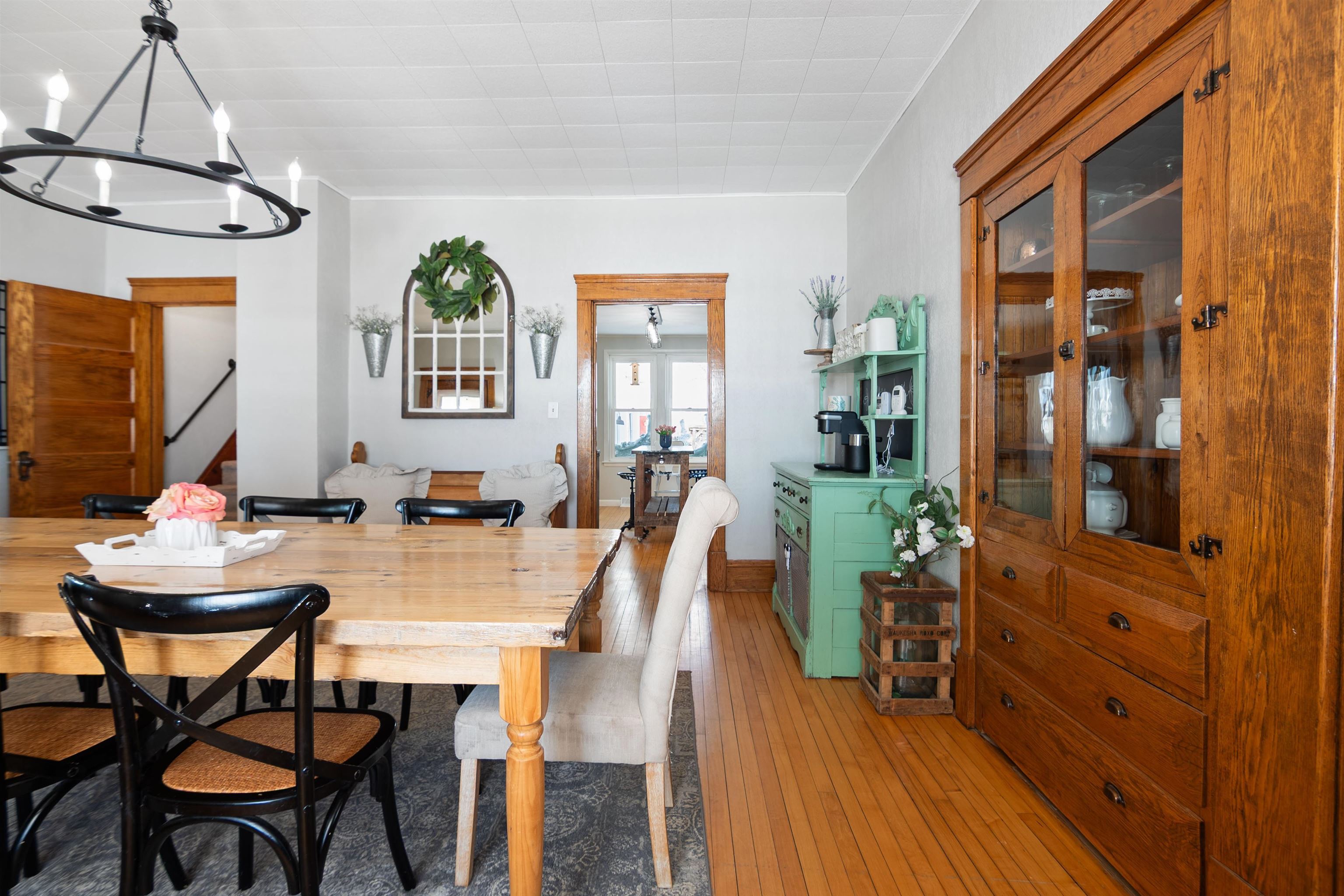 Welcome home to this charming, olde-world farmhouse featuring original wood floors, trim and built-ins! Entertain in the inviting formal dining room & enjoy a bright kitchen with concrete counters & tile backsplash. Main lvl features 9' ceilings, 1st fl. laundry, bedroom/flex space. 2nd lvl includes spacious primary bedrm & full bath w/ tiled shower/soaker tub. Sip your morning coffee in 1 of 2 screened porches before enjoying a stroll around the lovingly landscaped 1.58-acre grounds & bountiful orchard! Enjoy apple, mulberry, peach, cherry, pear trees & raspberries, grapes & asparagus. Adnl features: wraparound porch, mudroom w/ ample storage, 2-stall att. grg, oversized det. 2-stall grg/shop. Per SLR: septic ('21), windows/furnace ('15), AC ('18). Conveniently 25 min from GB or Appleton!